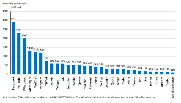 Figure 1 shows the distribution of monthly users in 2021 among large digital content-sharing platforms (more than 100 million users).