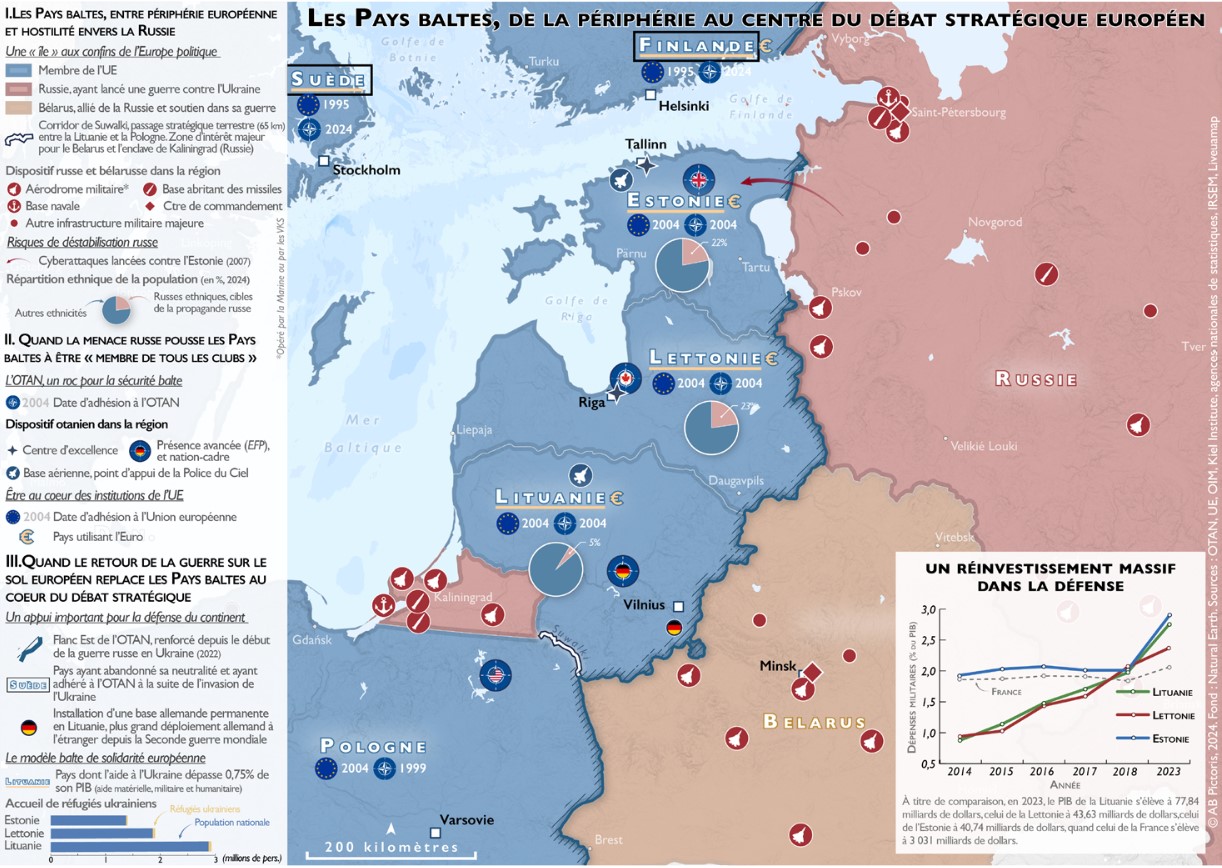 La guerre en Ukraine et la nomination de Kaja Kallas et Andrius Kubilius à des postes clés de l’Union européenne marquent un tournant en ce qui concerne la place des États baltes dans le débat stratégique européen. Historiquement atlantistes et méfiantes vis-à-vis de Moscou, l’Estonie, la Lettonie et la Lituanie ont vu leur approche de la sécurité évoluer. Après leur adhésion à l’OTAN et à l’UE en 2004, les États baltes ont cherché à stabiliser leur intégration en renforçant leurs alliances militaires et économiques. La guerre de 2008 en Géorgie et les cyberattaques contre l’Estonie en 2007 ont intensifié leur perception de la menace russe. En 2014, l’annexion de la Crimée a conduit à un réinvestissement militaire et à l’arrivée de troupes de l’OTAN sur leur territoire. L’invasion de l’Ukraine en 2022 a accéléré la rupture avec la Russie, entraînant la suppression de monuments soviétiques et une transition vers un enseignement exclusivement en langues nationales. L’OTAN reste leur principal garant sécuritaire, mais l’UE joue un rôle croissant, notamment en matière de défense industrielle et énergétique. La Suède et la Finlande rejoignant l’OTAN en 2024 renforcent la sécurité régionale. L’évolution de la politique américaine sous Trump pousse les Baltes à réévaluer leur dépendance vis-à-vis des États-Unis. Désormais, ils participent activement aux décisions européennes, illustrant un repositionnement stratégique entre OTAN et UE.