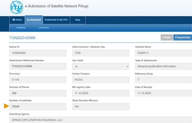 Tout projet spatial doit faire l’objet au préalable d’une demande de réservation de fréquences radioélectriques associées à des positions orbitales. Cela est essentiel pour permettre aux satellites de fonctionner correctement une fois lancés. Ces demandes sont portées par une agence nationale vers l’Union internationale des télécommunications (UIT), institution spécialisée des Nations unies.