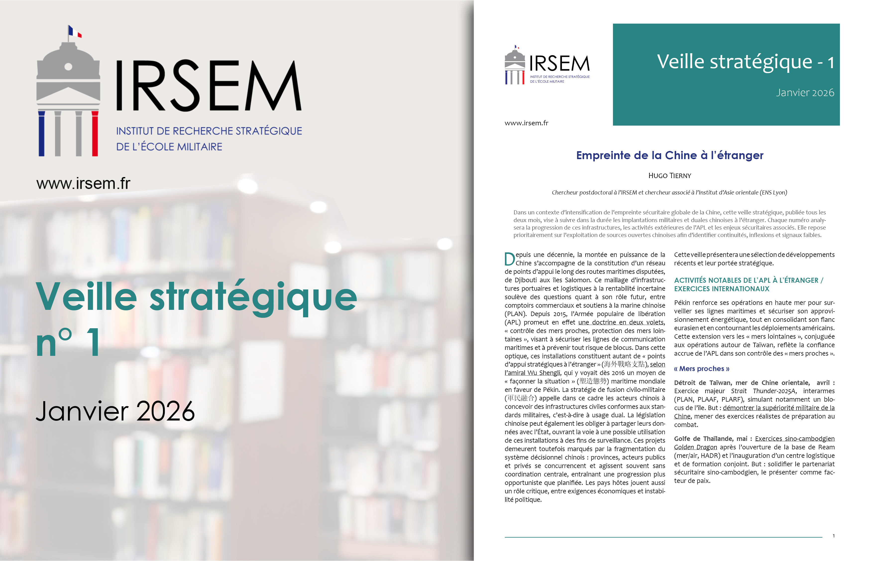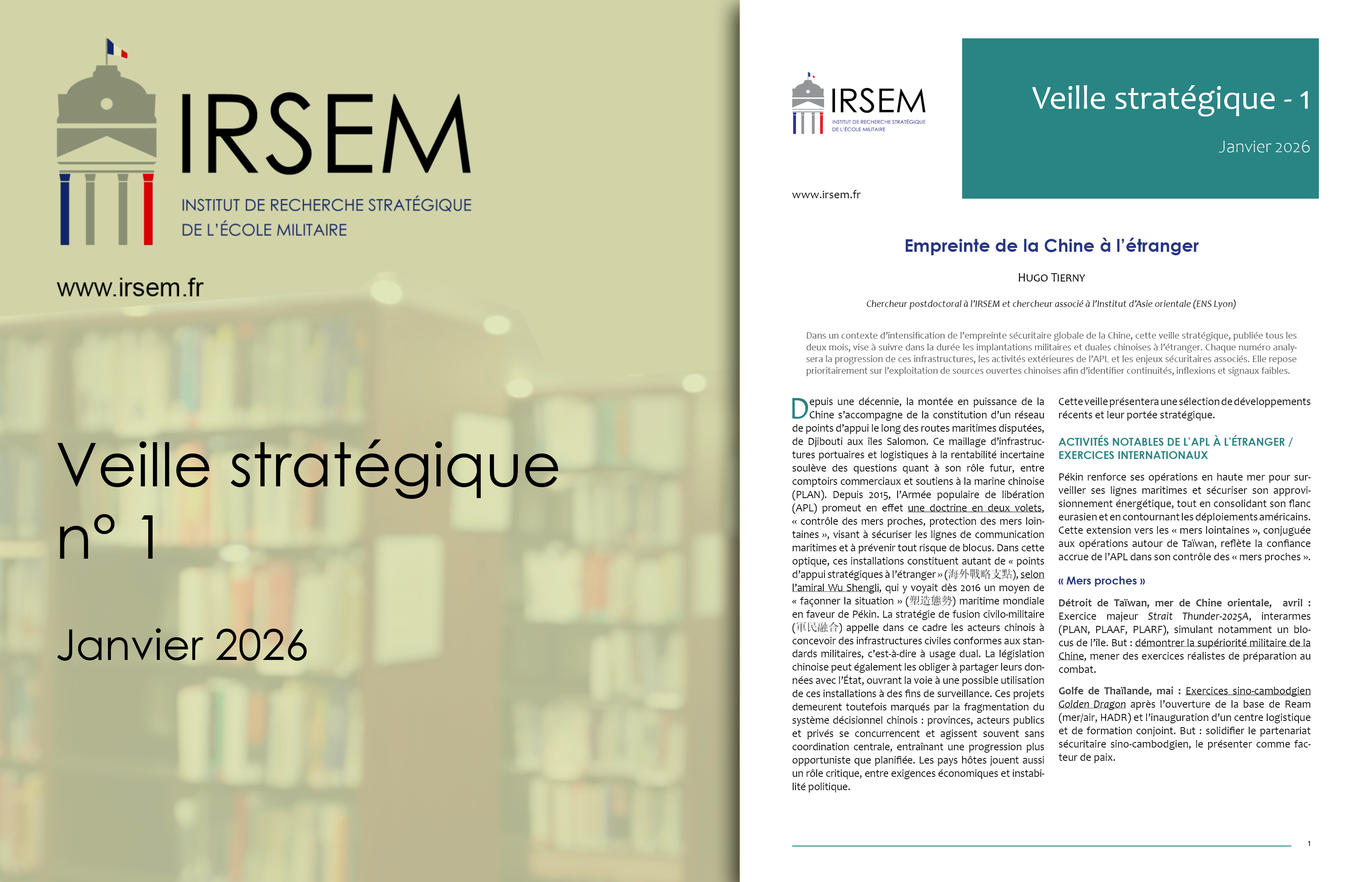 Dans un contexte d’intensification de l’empreinte sécuritaire globale de la Chine, cette veille stratégique, publiée tous les deux mois, vise à suivre dans la durée les implantations militaires et duales chinoises à l’étranger. Chaque numéro analysera la progression de ces infrastructures, les activités extérieures de l’APL et les enjeux sécuritaires associés. Elle repose prioritairement sur l’exploitation de sources ouvertes chinoises afin d’identifier continuités, inflexions et signaux faibles.